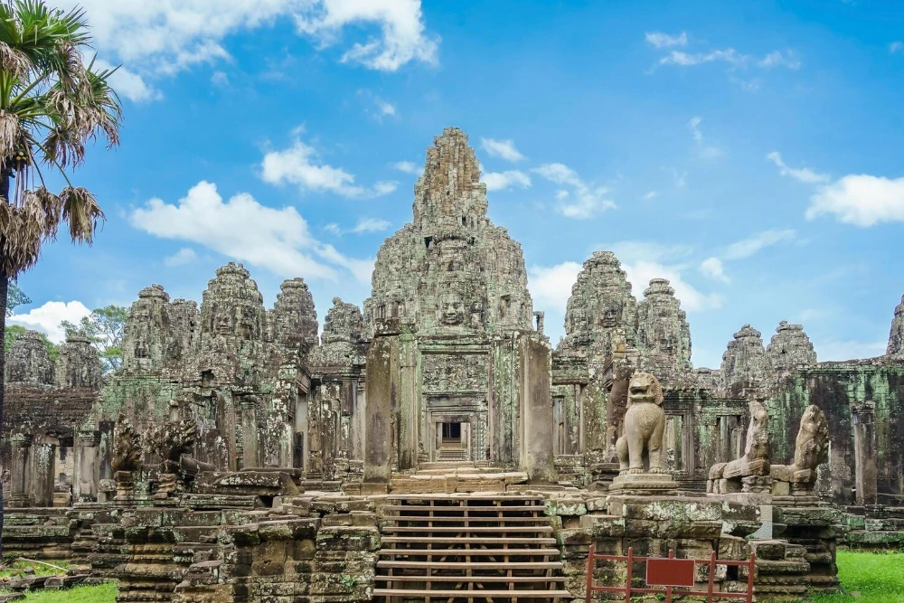 Desayuno. Empezamos con la visita de Angkor Thom. Salida en Tuk – Tuk hacia la puerta sur del complejo. Visita de la Antigua capital de Angkor Thom (Siglo XII), el templo Bayon, único por sus 54 torres decoradas con 200 caras sonrientes de Avolokitesvara, el templo Baphuon, construido bajo el mandato de Jayavarman I, el Phimeanakas y las terrazas del rey leproso y de los elefantes, así como las cámaras reales.
