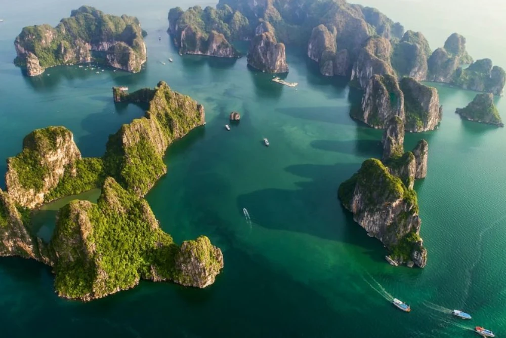 Desayuno. Salida hacia la Bahía de Halong (o bahía de Lan Ha, una parte de Halong), declarada Patrimonio de la Humanidad por la UNESCO, en un trayecto a través de tierras agrícolas del delta del río Rojo y el paisaje de campos de arroz. Llegada a Halong y embarque a bordo de una embarcación. Almuerzo a bordo.