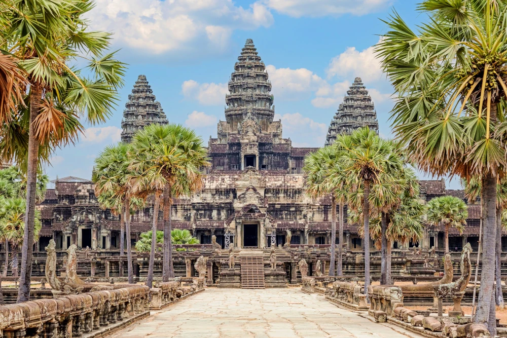 Las conocidas cinco torres forman parte de la bandera camboyana. Esta obra de arte del siglo XII está considerada entre los historiadores de arte, como el primer ejemplo de arquitectura y arte clásicos Khmer.